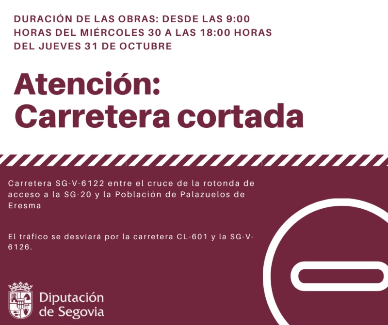 Corte de la carretera provincial SG-V-6122 los días 30 y 31 de octubre